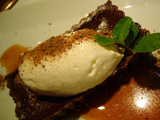 For dessert we had an apple pastry with cinamon ice cream and a chocolate tart with fresh whipped cream.
