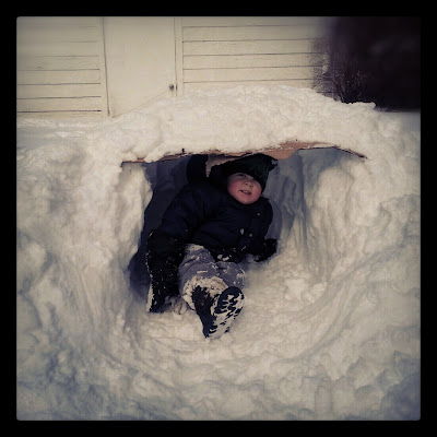 The snow hit a bit later than originally predicted- the bulk came in around 9 a.m. We tried to go out and get to work, but with not much success. People were spun out all over the roads, especially on the hills, and the plows (of which there are not many) couldn't keep up with the 2-3 inches an hour that fell. We experienced thundersnow (!). All in all, it was a lot of fun. The universities cancelled classes on Thursday and Friday, and Joe was able to telecommute (not that he could have actually made it to work...). With some free time, the munchkin and I built a snow fort, a snow man, and some slide hills in the yard. The snow wasn't great for packing, but we made it work. We drank too much hot chocolate. We watched movies after playing outside for hours. It was fantastic.